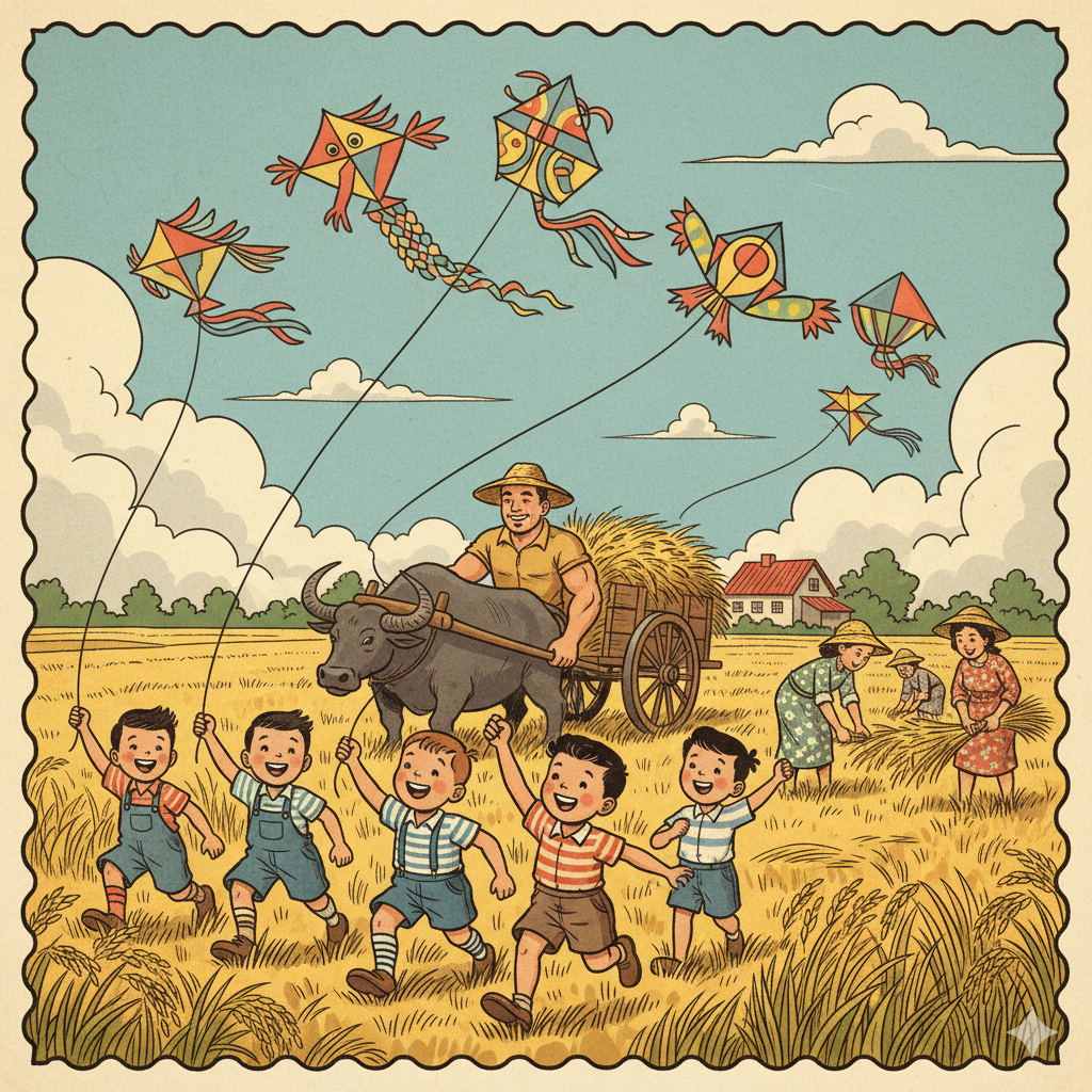 - Một cánh diều tuổi thơ trôi mình trên nền trời xanh biếc.